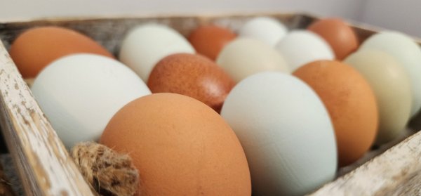Our layers are free range. Their door is opened at dawn and closed at dark. In addition to the non-GMO grain we provide, they eat bugs, worms and anything else they can find as they scratch and pick through the grass. The result is eggs that delicious and nutritious. When you cook and eat these eggs, you'll know they didn't come from any grocery store.
